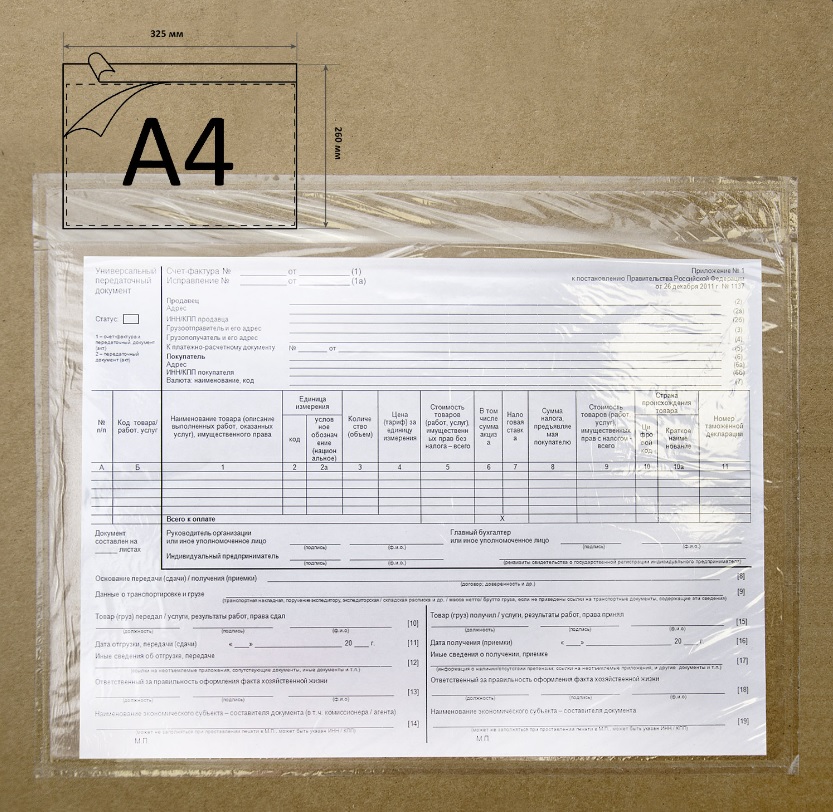 Пакет для сопроводительной документации 325*260 однослойный прозрачный